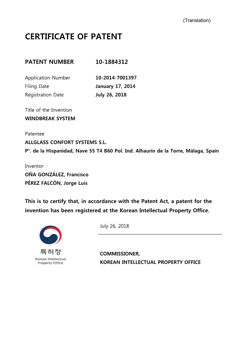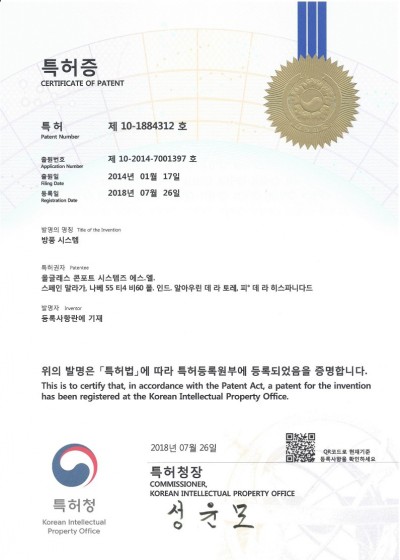 방풍 시스템 특허증