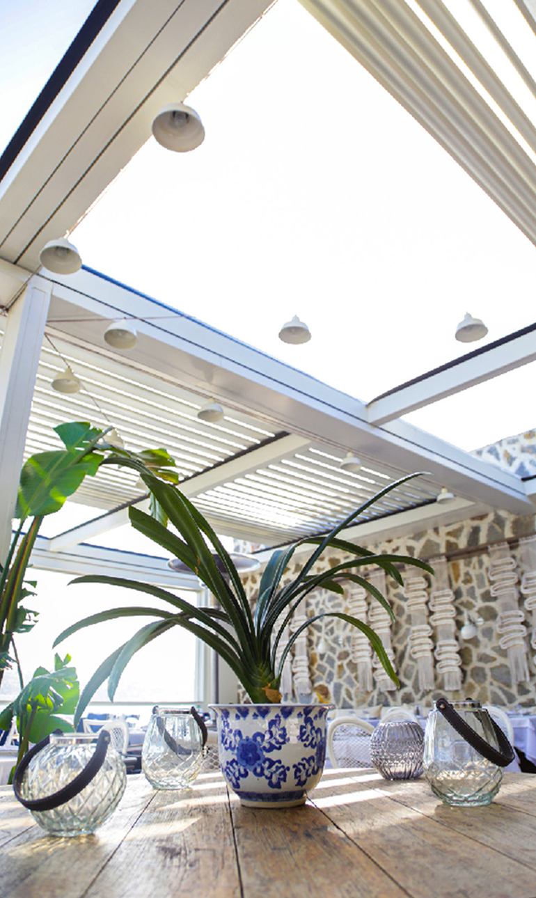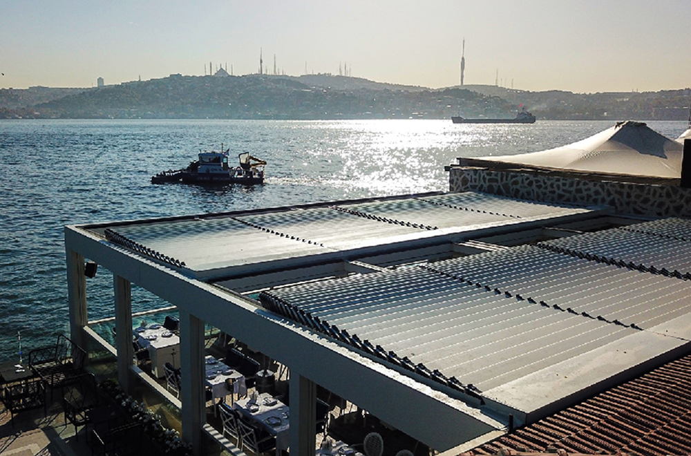 시스템에 통합된 엔진과 스프링 메커니즘을 통해 천장을 구성하는 알루미늄 패널이 앞뒤로 움직이며 개방, 폐쇄 또는 반개방 천장을 얻을 수 있습니다.
