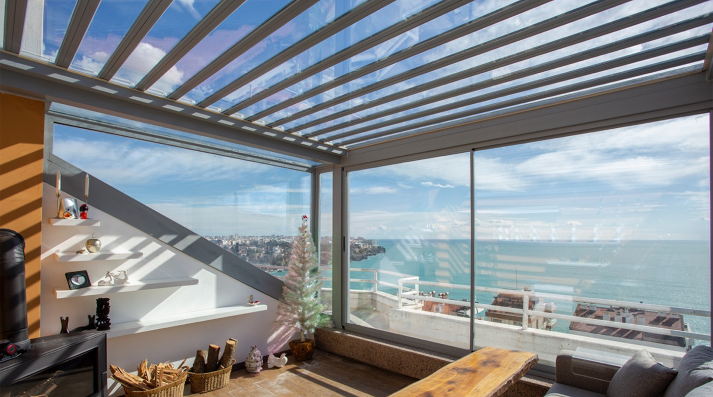 Sky Glass 유로플렉스의 기술로 루버가 글라스 페어로 하늘을 볼 수 있는 제품입니다.
