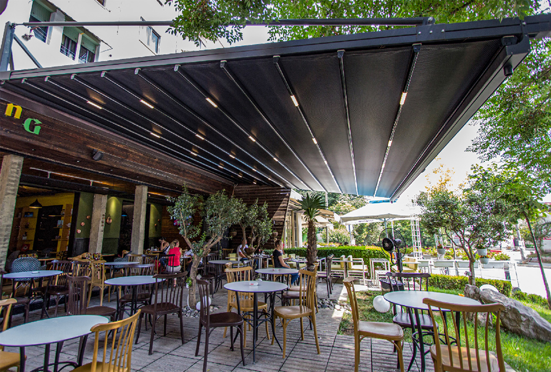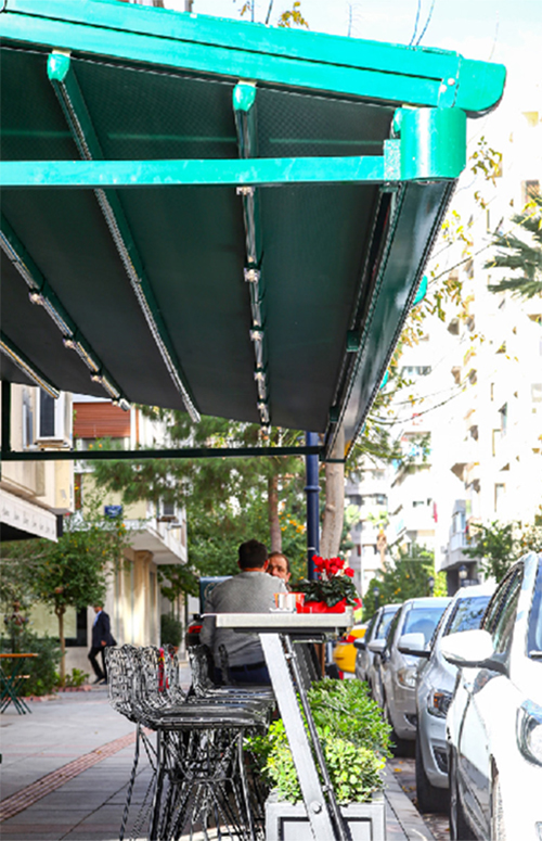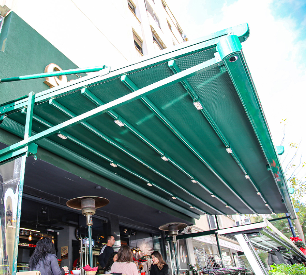 Pino는 다음과 같은 특수 강철 행거 부품을 사용하여 현재 영역의 벽이나 천장에 장착할 수 있습니다.전면에 기둥 지지대가 필요 없이 Pergola의 베어러 레일 프로파일에 연결됩니다. 알루미늄 스트림 프로파일은 제품에 대한 re-spect와 함께 수평한 방향으로 배치됩니다. 경사를 통해 흐르는 물은 그 후에 그 것을 밖으로 옮깁니다. 특수 체인 배수 장치
